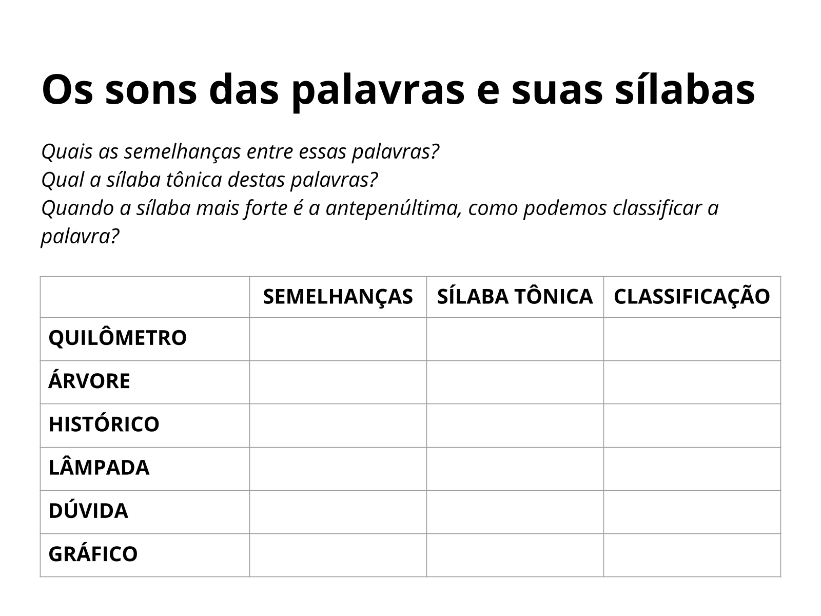Você vai aprender a classificar as palavras quanto à posição da sílaba tônica: oxítonas, paroxítonas e proparoxítonas! Bem fácil!